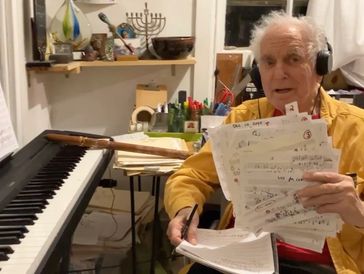 David Amram composing at his home (photo used by permission, courtesy of David Amram)