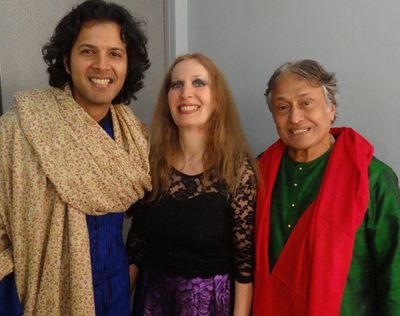 In this photo: the collaborating artists Amjad Ali Khan, Ayaan Ali Bangash and Elmira Darvarova